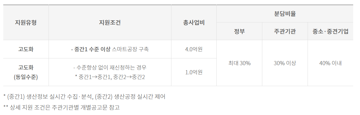 주관기관이 중소기업과 협력하여 스마트 공장을 구축하면 정부가 구축비용의 일부를 지원함으로써 대/중소기업 동반 성장 및 민간 스마트 공장 자발적 확산체계마련