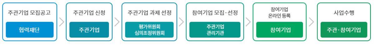 *주관 기업,참여기업 참여방법 : 협력재단 홈페이지-사업공고(과제모집공고 확인 후 기한 내 신청)