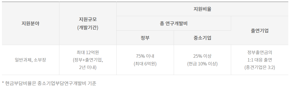 *지원 방식 : 출연기업이 날인한 '투자동의서' '투자기업 출연금 사용계획' 제출 필수(중소기업 기술개발사업 종합관리 시스템에서 확인 가능)