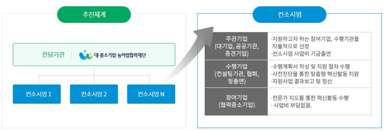 대기업, 공공기관, 중견기업과 정부가 자금을 조성하여 주관기업이 핵심파트너로 육성할 협력 중소기업의 경쟁력 강화, 혁신활동을 종합지원