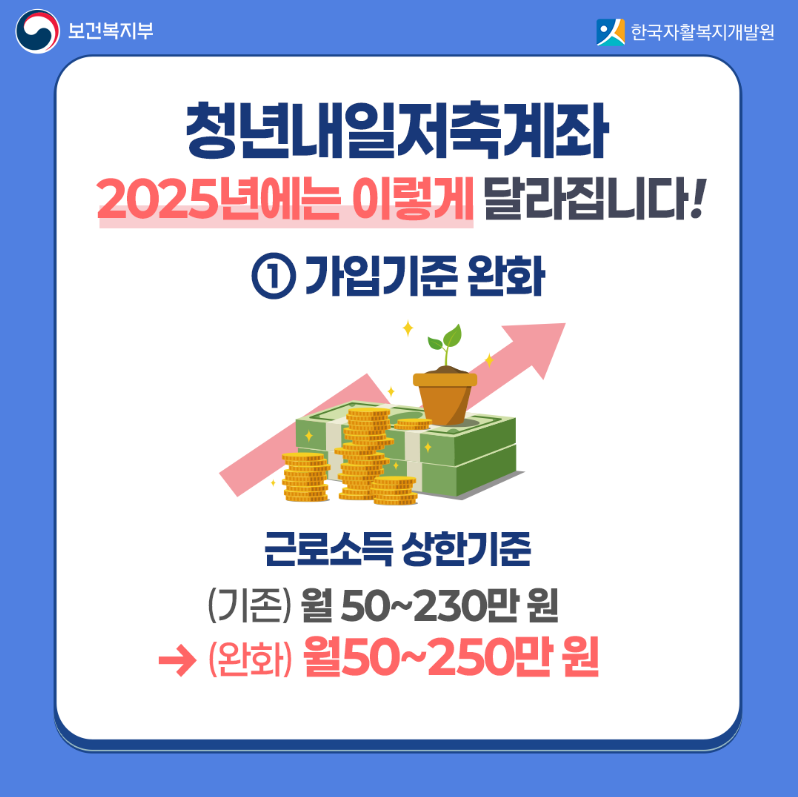 (가입요건 중 근로·사업소득 기준의 상한을 기존 230만 원에서 250만 원으로 상향 조정하여 가입 대상층 범위 확대)